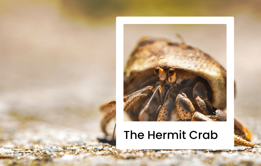 Hermit crabs have soft bodies and so they use the empty shells of another creature for protection. At times I have behaved like a hermit crab!